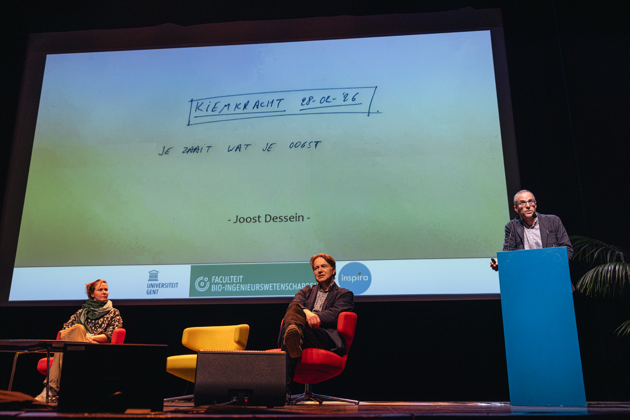 Daarna volgde het panelgesprek met Million Belay van Alliance for Food Sovereignty in Africa, Lien Vrijders van Vitale Rassen, en Paul Grabenbergen van Arche Noah. Hun centrale boodschap was helder: alles begint bij zaad. De vraag wie daar controle over heeft, bepaalt de toekomst van ons voedselsysteem. Ligt die macht bij industriële monopolies die boeren afhankelijk maken van duur, jaarlijks terug te kopen zaad? Of bij boeren en gemeenschappen, die zaden kunnen delen, aanpassen en verbeteren? Het antwoord op Kiemkracht was duidelijk: voedselsoevereiniteit begint bij autonomie over zaden.